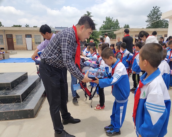 6 月25日,侯云昌書記一行先后前往金橋慈善基金會(huì)出資興建的凈口立尊第二小學(xué)和中原鄉(xiāng)田站小學(xué),慰問(wèn)當(dāng)?shù)亓羰貎和?,受到?dāng)?shù)貛熒臒崃覛g迎。慰問(wèn)現(xiàn)場(chǎng),金橋慈善基金會(huì)分別向兩所學(xué)校的老師和同學(xué)發(fā)放了慰問(wèn)金及助學(xué)金11 萬(wàn)元,并發(fā)放了臺(tái)燈、床品、書包、水壺等慰問(wèn)品近6 萬(wàn)元,集團(tuán)員工自發(fā)捐贈(zèng)課外書籍110 余冊(cè)。同時(shí),金橋慈善基金會(huì)向中原鄉(xiāng)田站小學(xué)捐贈(zèng)100 萬(wàn)元,用于教學(xué)樓的重建。捐贈(zèng)儀式后,金橋焊材集團(tuán)黨委副書記、金橋慈善基金會(huì)秘書長(zhǎng)李紅梅講話,學(xué)校校長(zhǎng)致感謝詞。